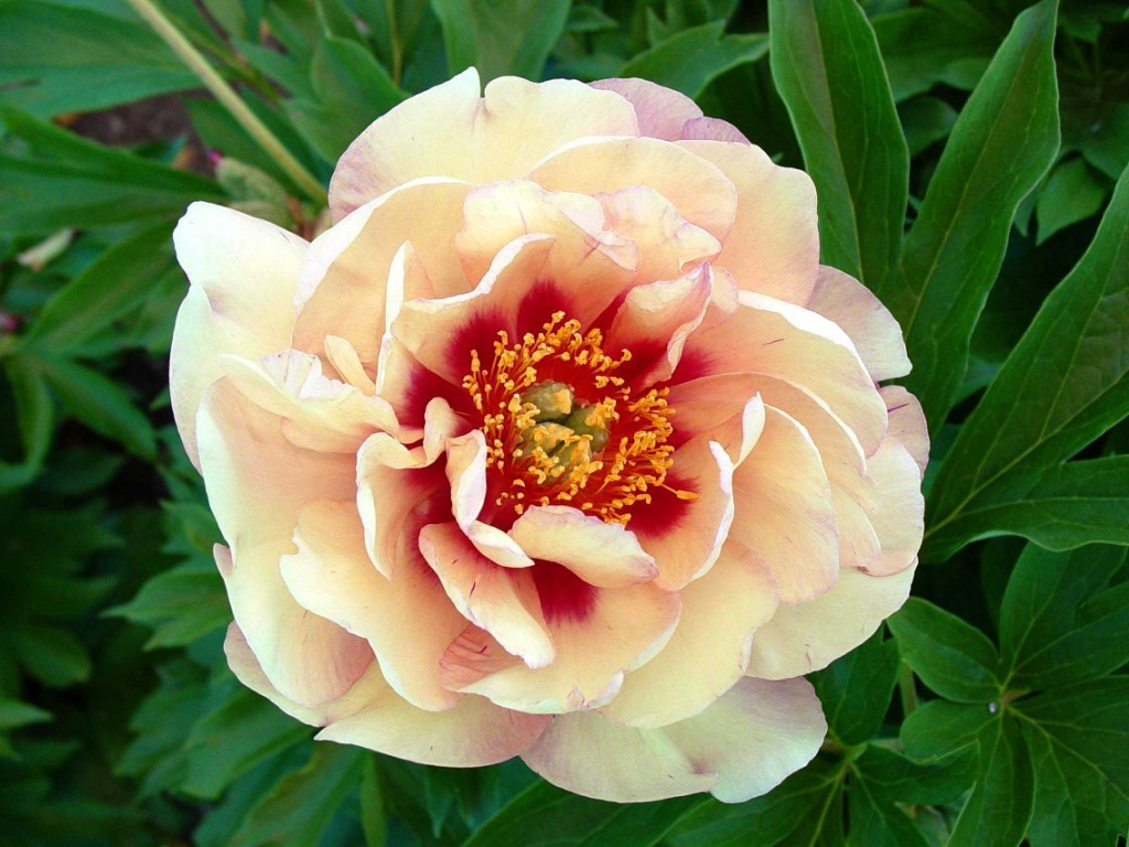 Itoh met een mooie creme roze, romig gele kleur, met een diepgroene bladkleur.