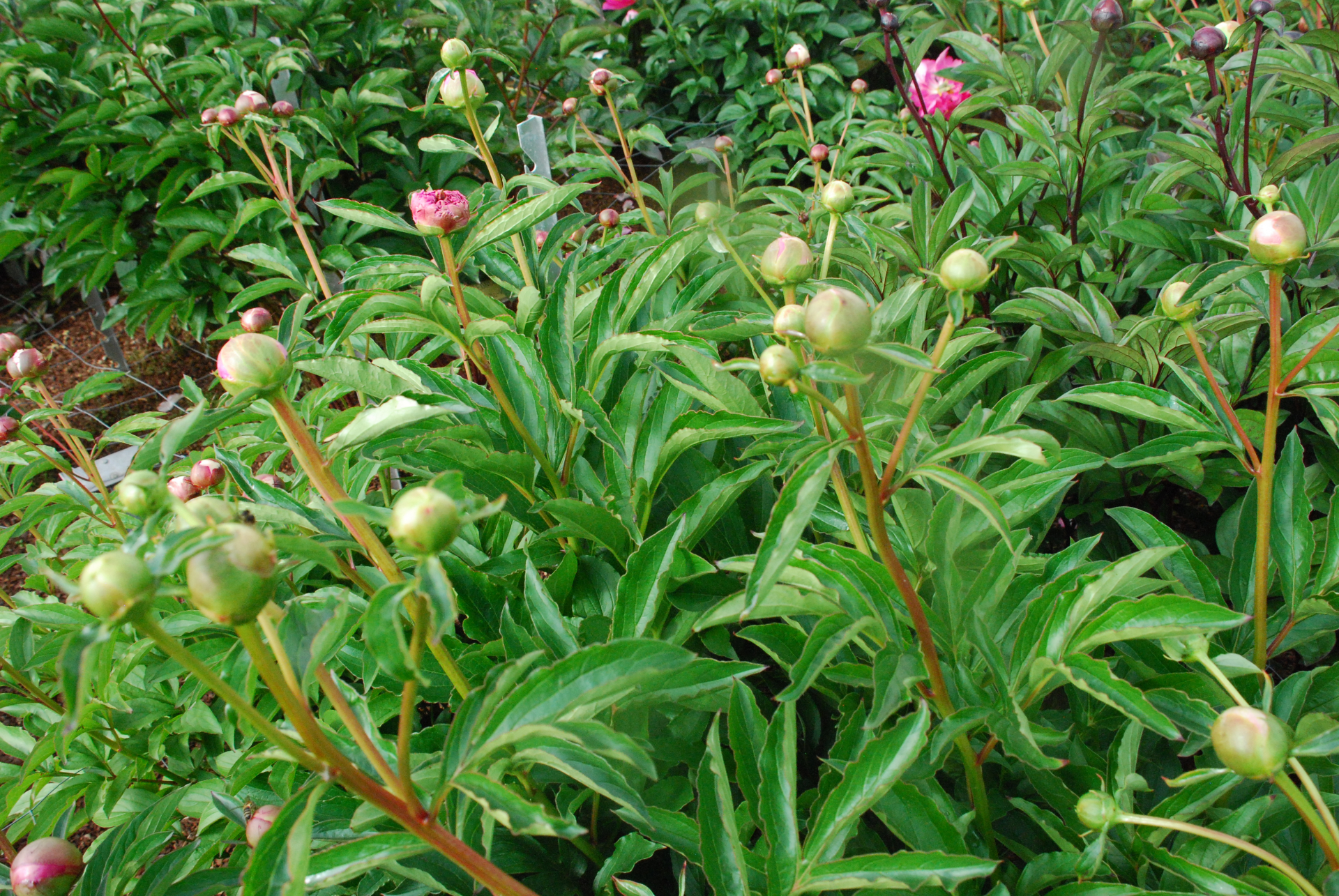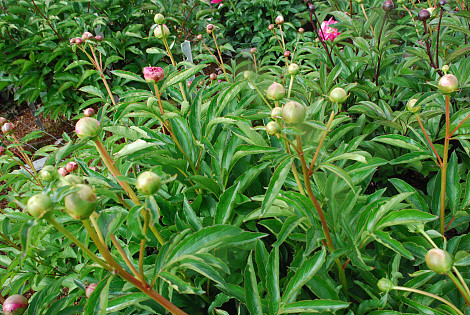 Pioen met zeer grote gevulde en geurende bloem, donkerder blad. Goede snijbloem.