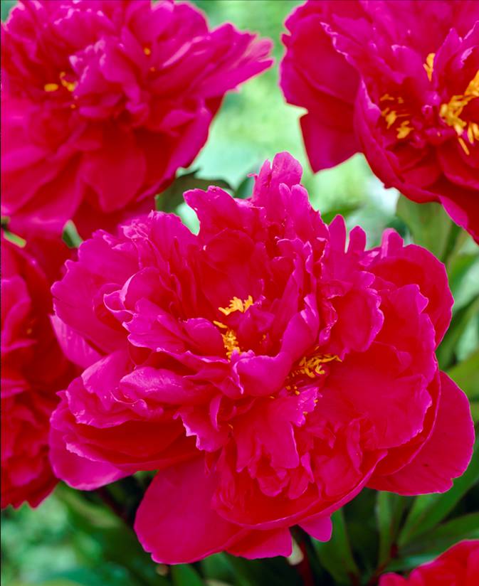 Donker karmijnrode bloemen met een paarse gloed. Stevige stelen.