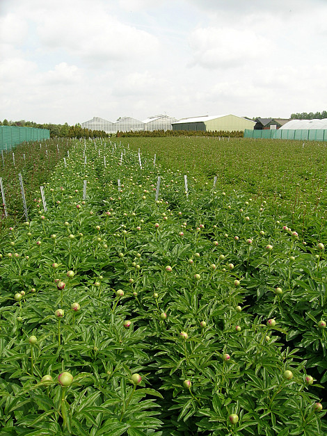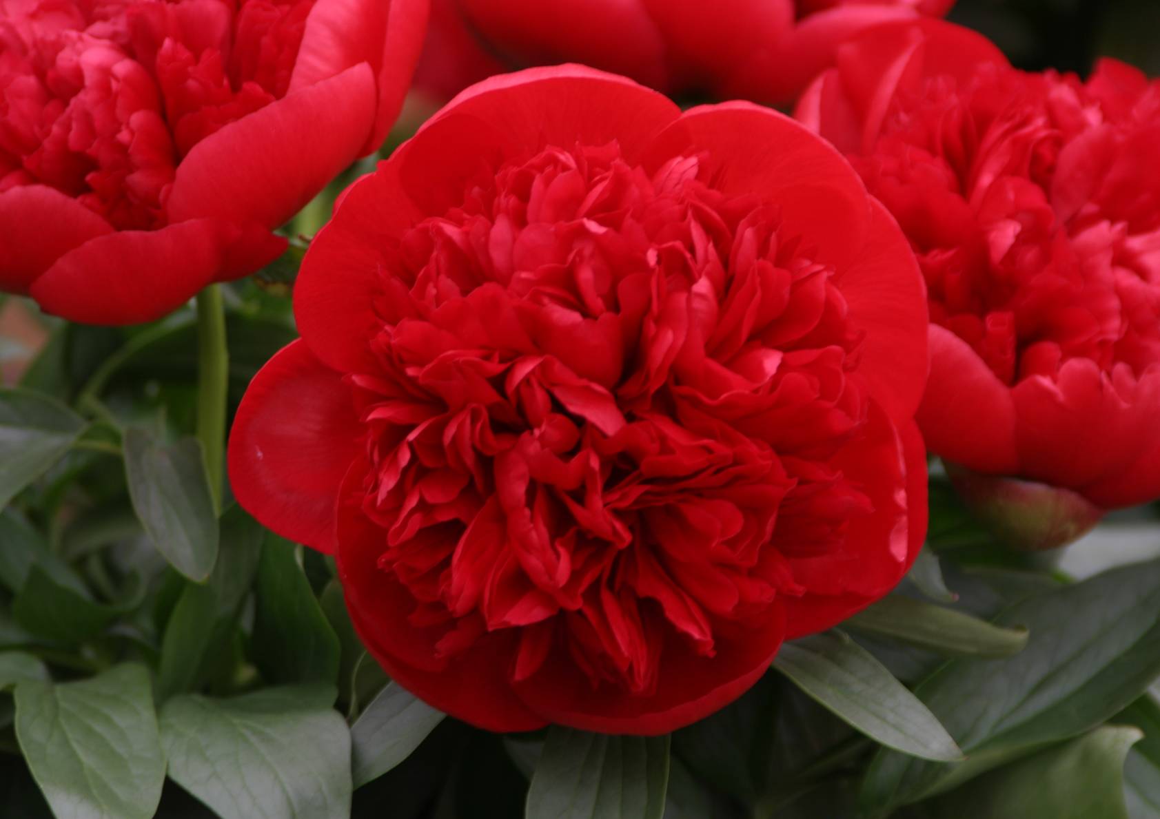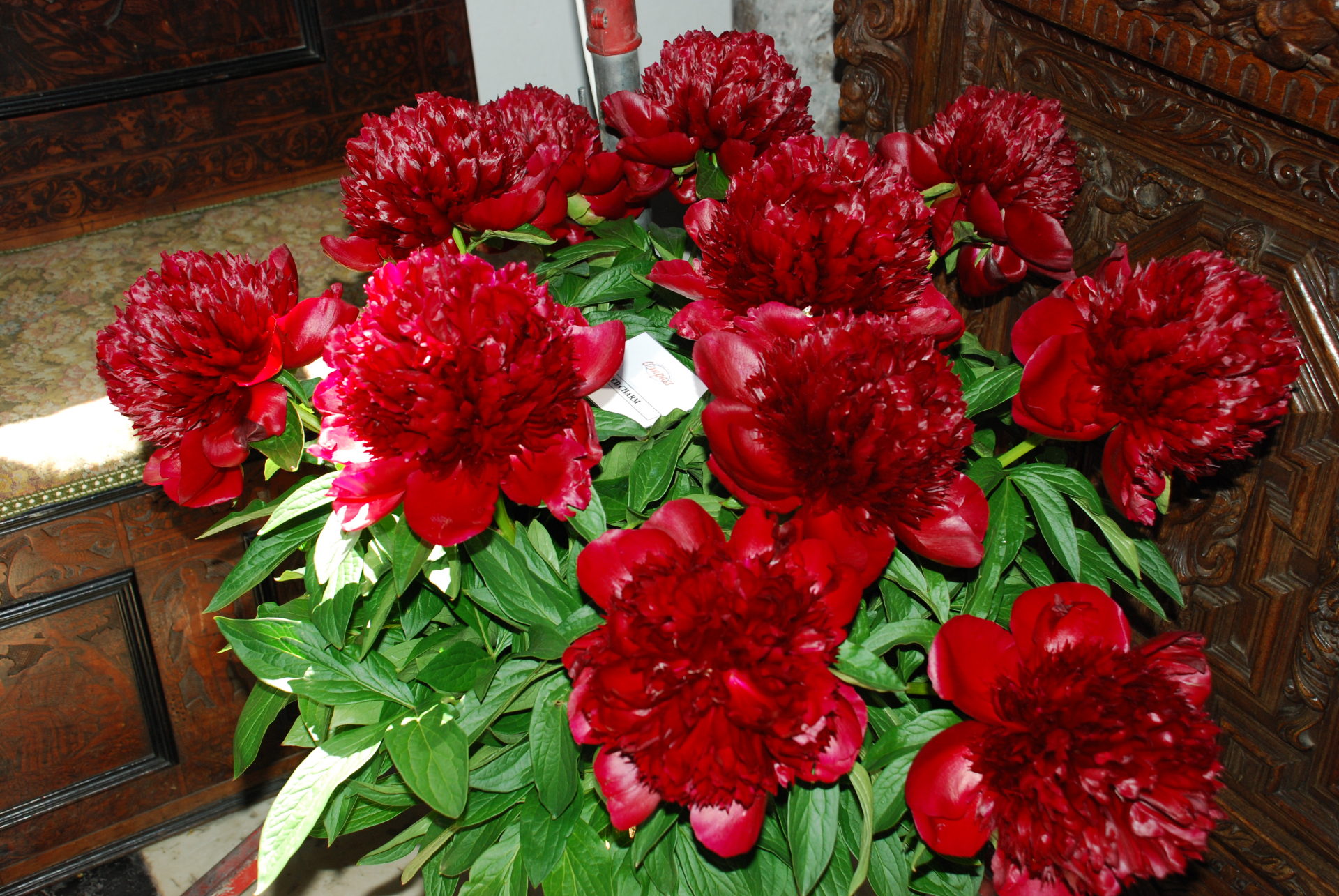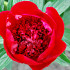 Grote bomvormige diep rode bloem en stevige steel, vroege snijbloem.