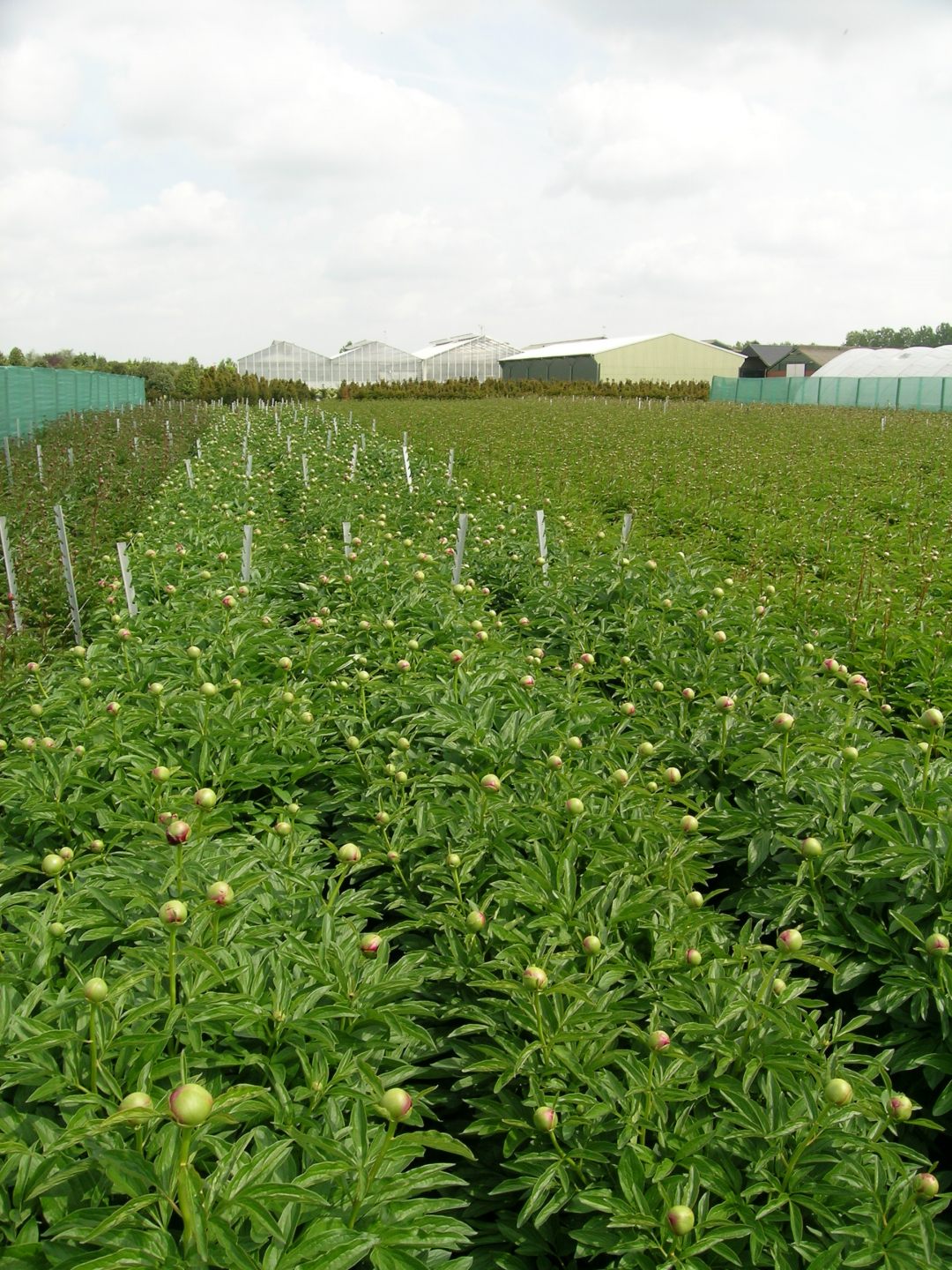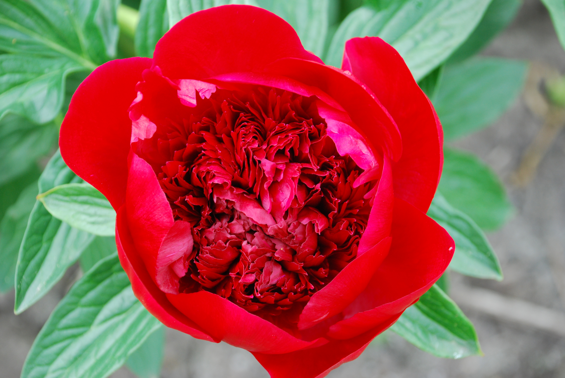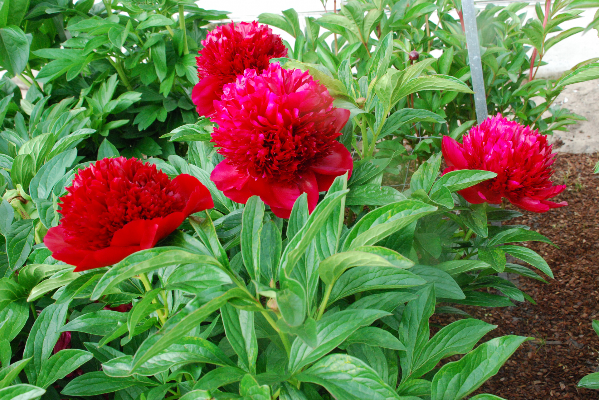 Grote bomvormige diep rode bloem en stevige steel, vroege snijbloem.